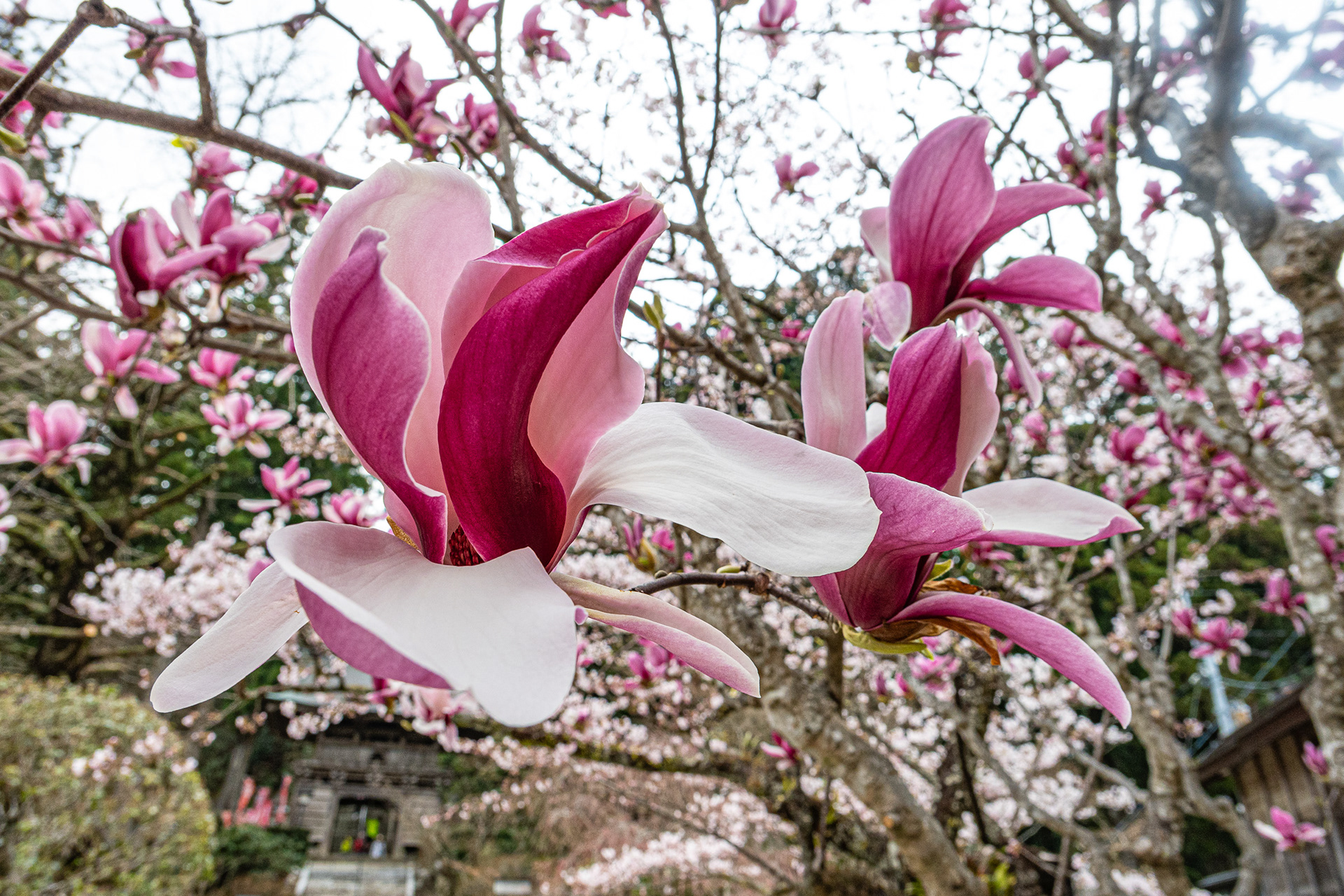 Tag und Nacht Schlange stehen um vor den ersten Kirschblüten ein Foto oder ein Selfie zu machen.